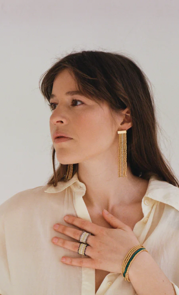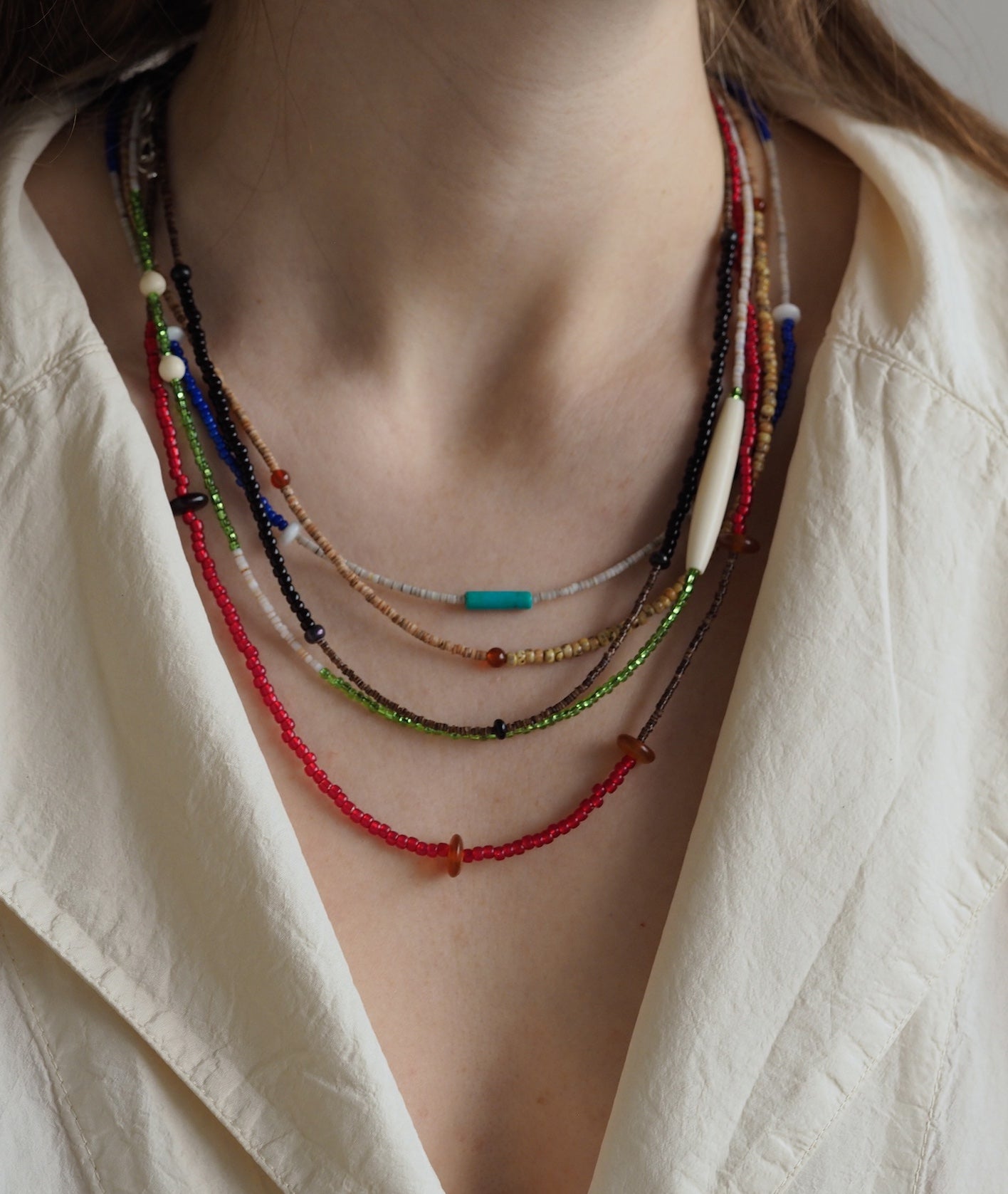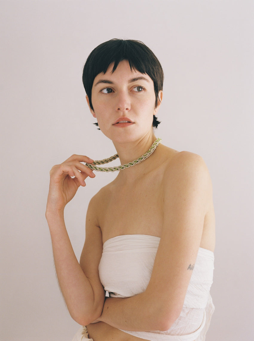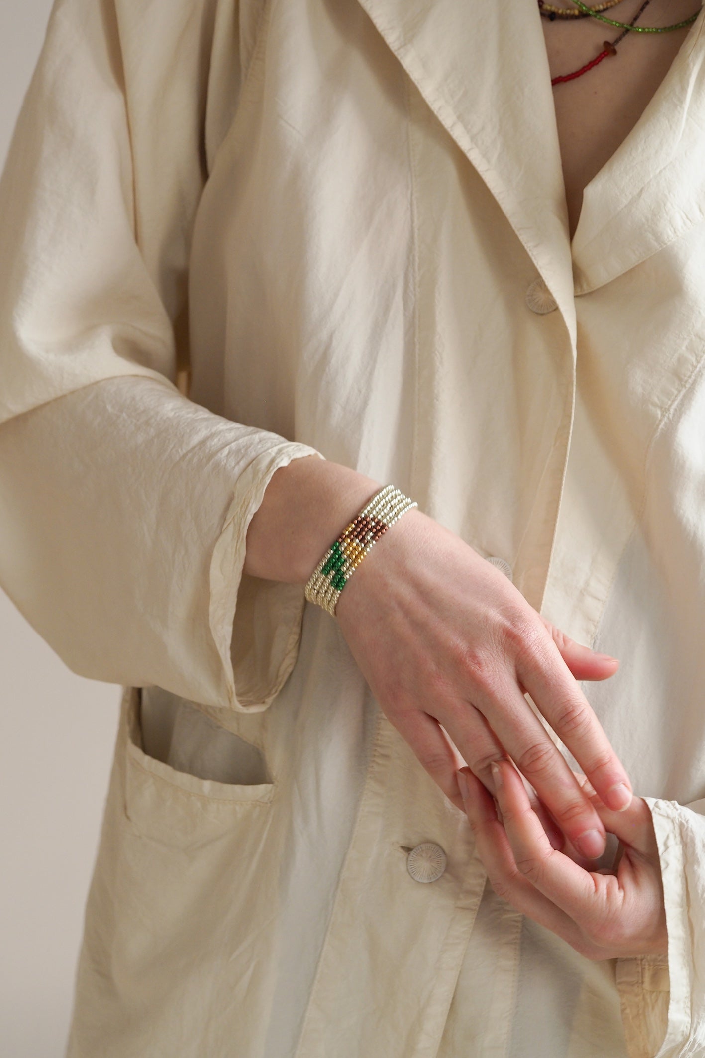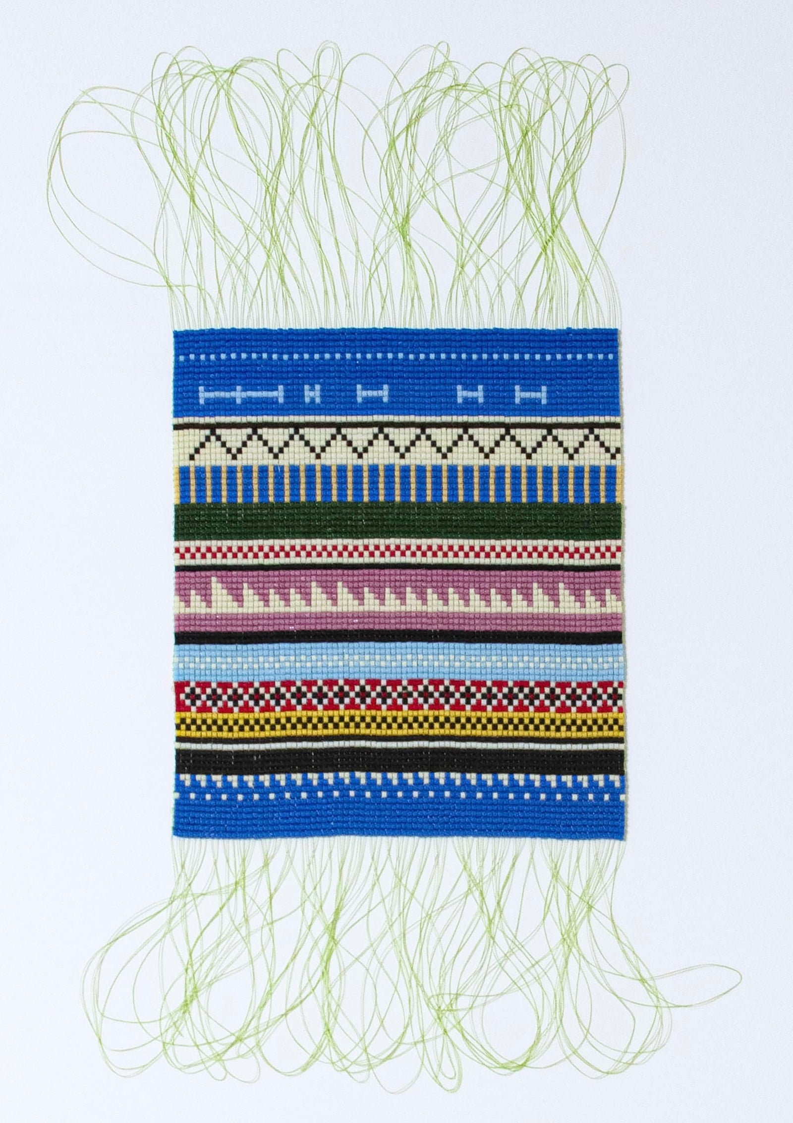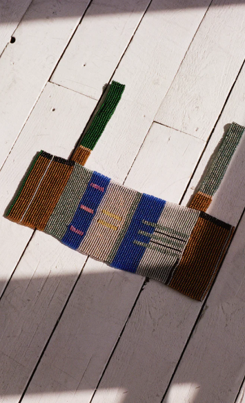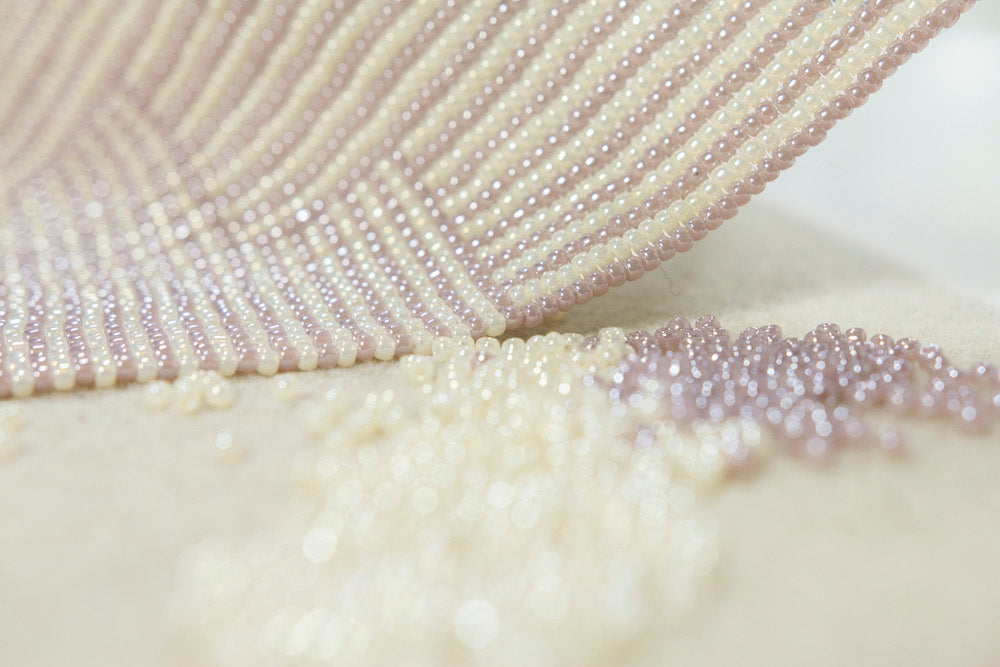 Jede Perle ist ein Element im Muster. Es entsteht ein Gesamtdesign, in dem jede individuelle Perle erst im Zusammenspiel mit anderen ihre Wirkung entfaltet.